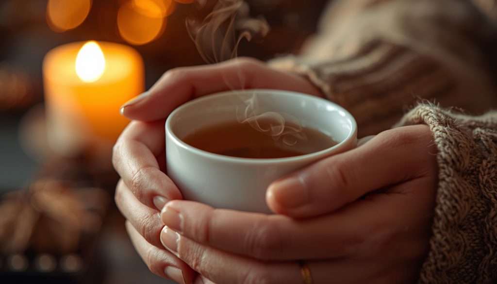 I make chamomile or lemon balm tea most nights. I have no idea if the tea itself does anything — honestly, I suspect the ritual matters as much as the contents. Standing in the kitchen, waiting for the kettle, wrapping my hands around a warm mug. It’s a pause. A deliberate slow-down in what might have been a fast day.